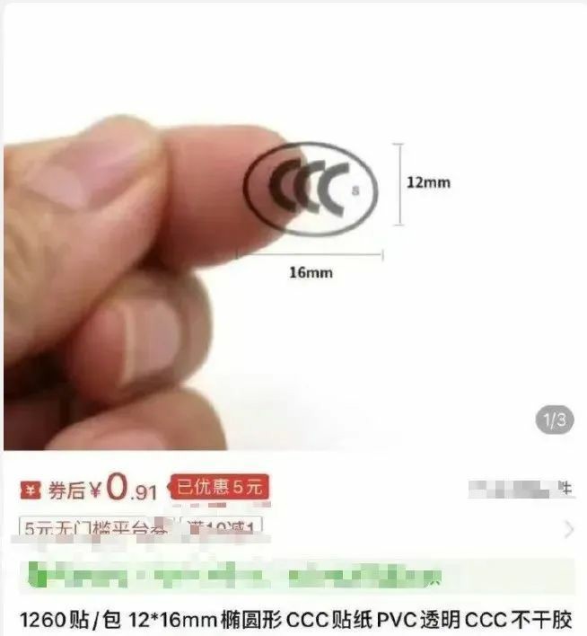 有网友发现,在一些购物平台上,部分商家违规低价售卖3C认证标签贴纸。